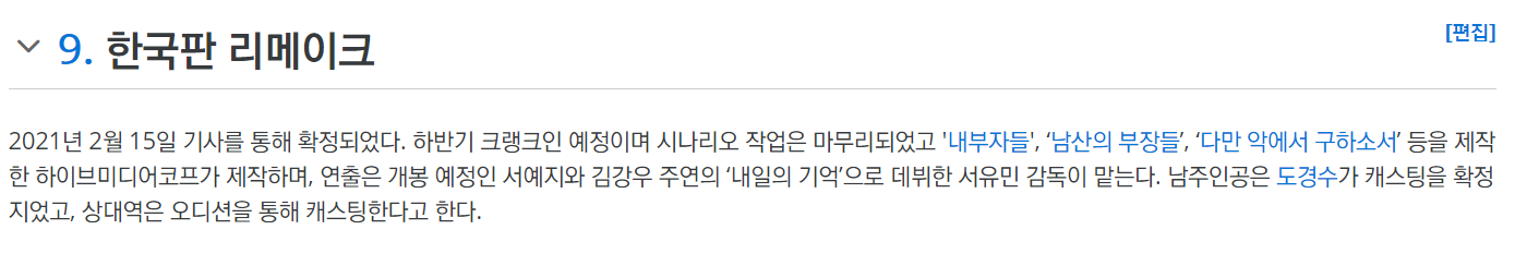 그리고 최근에 한국에서도 리메이크된다는데 졸라 당황... . . . 게다가 엑소 도경수?,,, 당황.. 근데 잘어울림; ㅋㅋㅋㅋㅋㅋㅋㅋㅋㅋㅋ